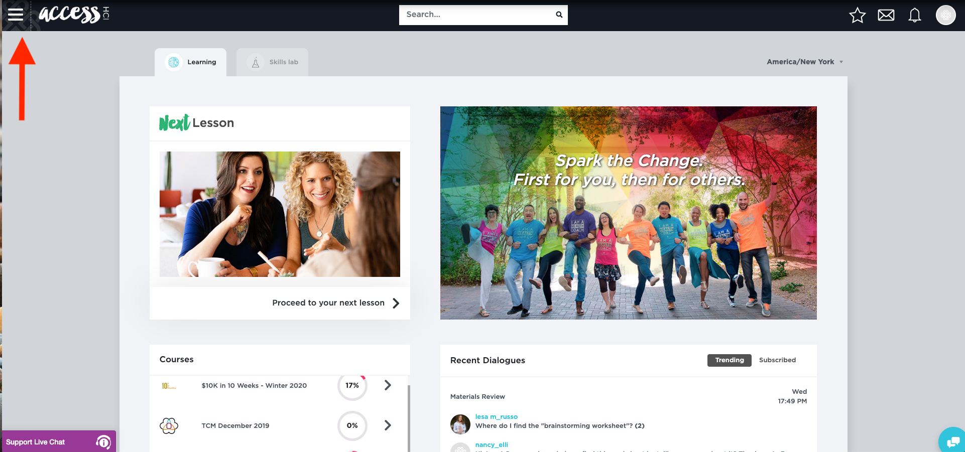 On your Learning page, click on the 3 bars in the top left-hand corner.