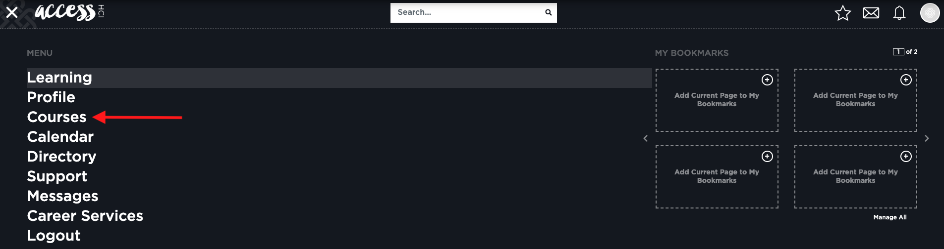 Then select courses from the Menu dropdown.