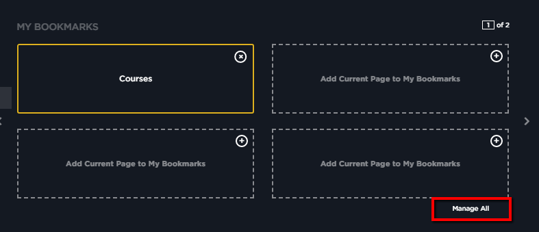 To view all your bookmarks you can simply click on "Manage All" on the lower right hand corner of the My Bookmarks section.